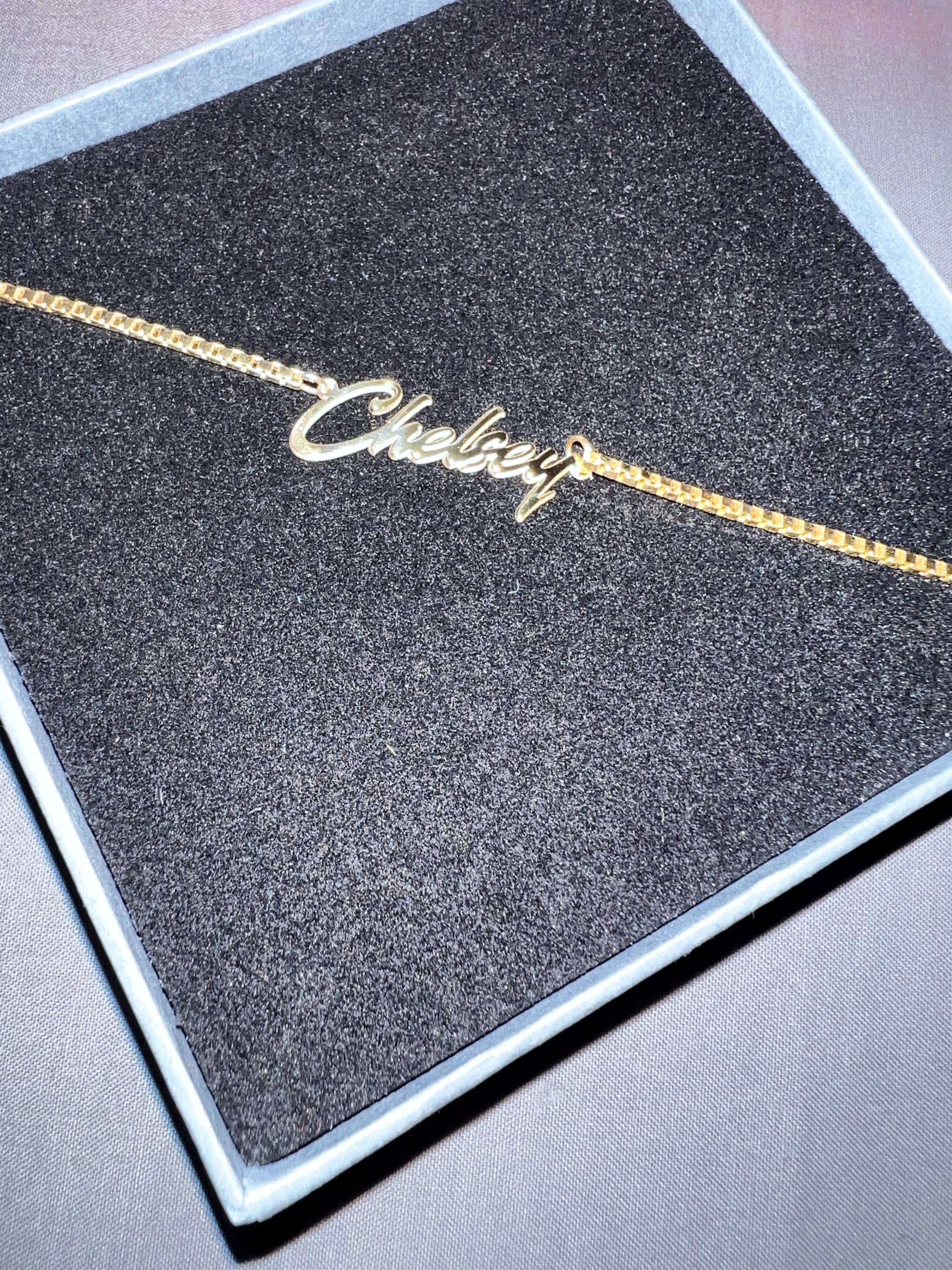 This stunning Personalized Box Chain Necklace is the perfect way to showcase her unique style. Crafted with care, this Personalized Box Chain Necklace features her own signature, making it a one-of-a-kind piece. The delicate design of this Signature Name Necklace adds a touch of elegance to any outfit, making it a thoughtful Gift For Her. Whether you're looking for a special Mother's Day Gift, birthday present, or just because this Dainty Name Jewelry is sure to make her smile. Personalize this necklace with her name or a meaningful word to create a truly special piece she'll cherish forever.
