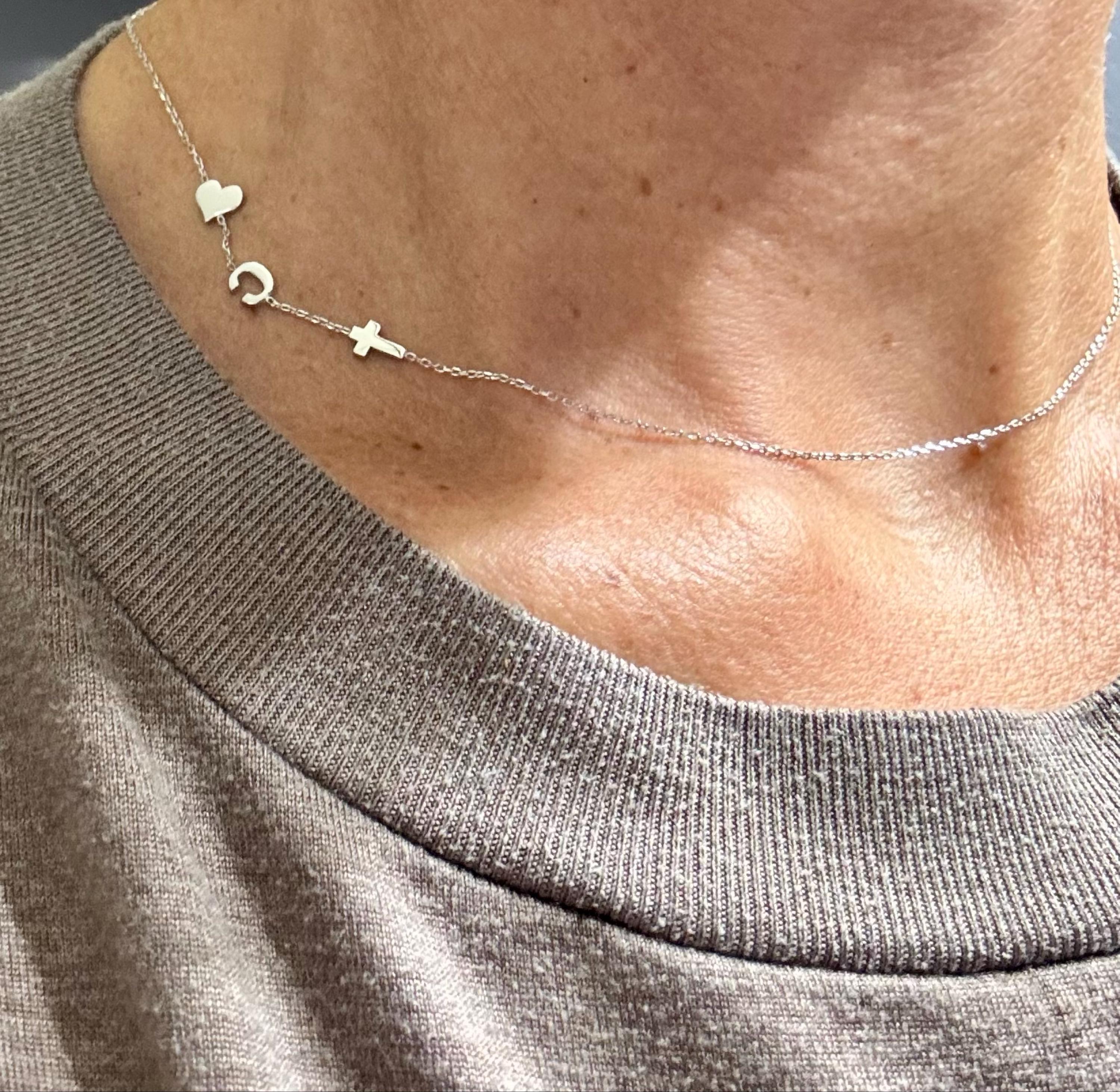 14K Gold Necklace - Personalized Sideways Initials - Christmas Gift - Gifts for Mom - Gold Necklace - Minimalist Look - Letter Necklace